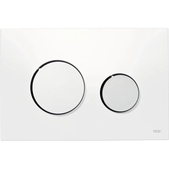 Пластиковая панель смыва унитаза TECEloop для системы двойного смыва.Панель смыва для смывных бачков TECE, фронтальная или верхняя установка.Сверхплоская панель смыва с двумя установленными на пружинах клавишами.Совместима с контейнером для гигиенических таблеток.