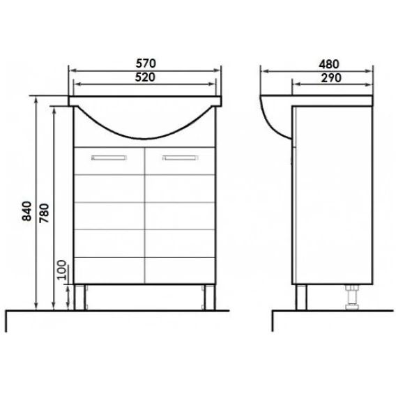 Механизм доводчика, Полочка, Ручки, Ножки, Тумба под раковину, Раковина