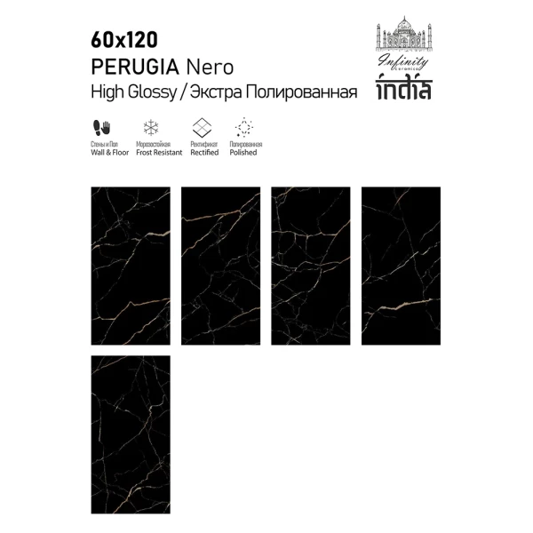 Керамогранит Infinity Ceramica PERUGIA Nero High Glossy 60х120