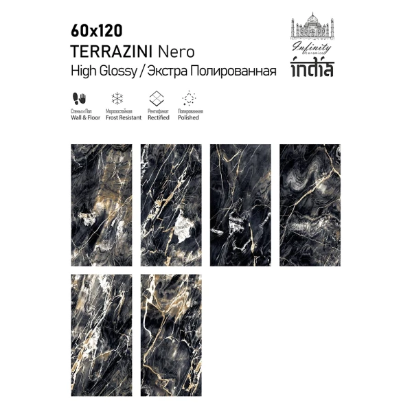 Керамогранит Infinity Ceramica TERRAZINI Nero High Glossy 60х120