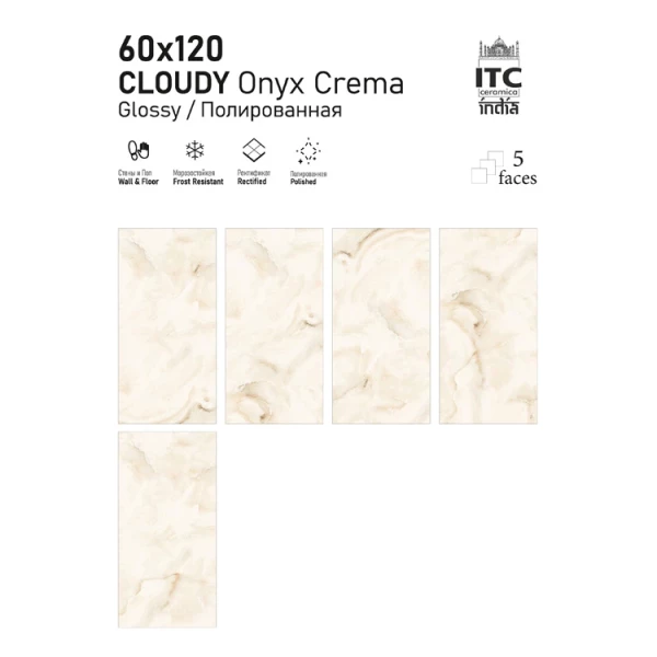 Керамогранит CLOUDY Onyx Crema Glossy 60х120
