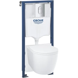 Комплект инсталляция с унитазом Grohe Rapid SL 38772001 с кнопкой смыва, хром + унитаз подвесной Grohe Euro Ceramic 39328000 + 39330002 безободковый, торнадо, с сиденьем микролифт, альпийский белый