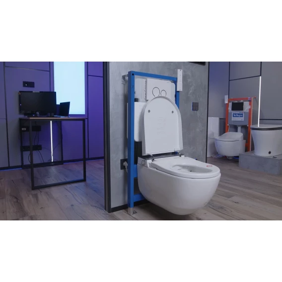 Комплектация: основное устройство, пульт дистанционного управления, две батарейки ААА, инсталляция со скрытым бачком для установки унитаза, инструкция по эксплуатации.