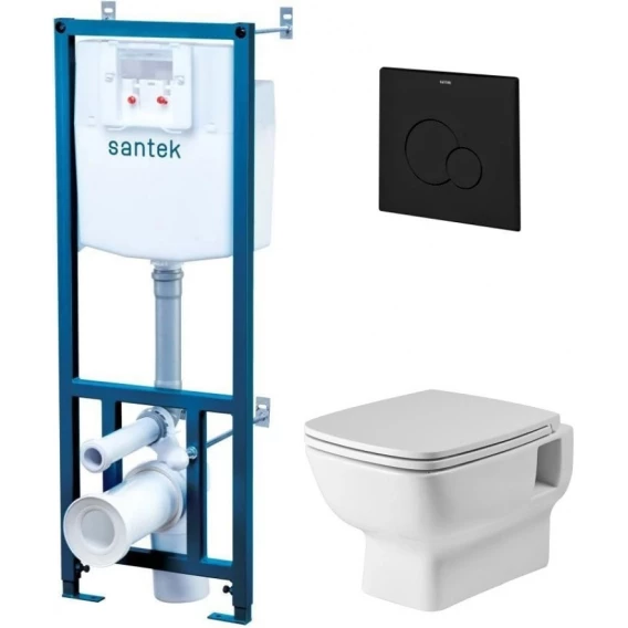 Комплект инсталляция с унитазом Santek 1WH501777 с кнопкой смыва, черный матовый + унитаз подвесной Santek Нео безободковый, с сиденьем микролифт, белый