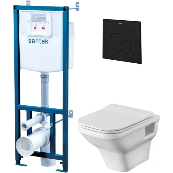 Комплект инсталляция с унитазом Santek 1WH501778 с кнопкой смыва, черный матовый + унитаз подвесной Santek Лайн безободковый, с сиденьем микролифт, белый