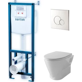 Комплект инсталляция с унитазом Santek 1WH501870 с кнопкой смыва, хром + унитаз подвесной Santek Скай безободковый, с сиденьем микролифт, белый