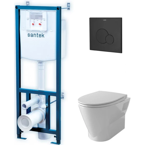 Комплект инсталляция с унитазом Santek 1WH501871 с кнопкой смыва, черный матовый + унитаз подвесной Santek Скай безободковый, с сиденьем микролифт, белый