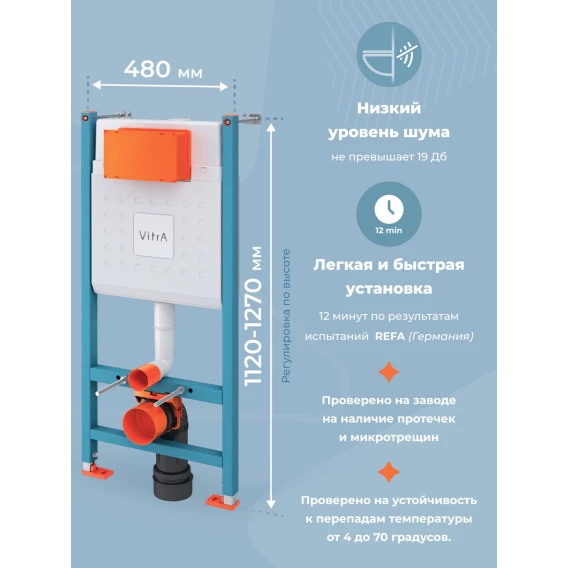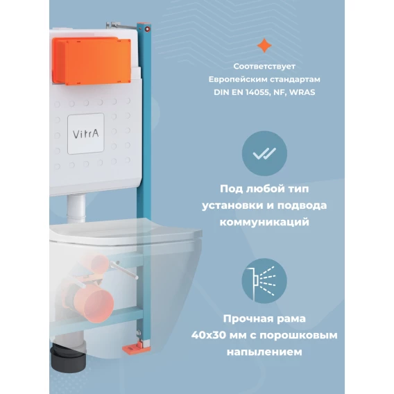 Комплект инсталляция с унитазом VitrA 9003B003-7203 с кнопкой белый + унитаз подвесной VitrA S50 безободковый, с сиденьем микролифт, белый