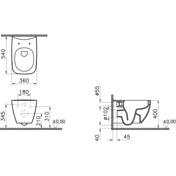 Комплект инсталляция с унитазом VitrA 9855B003-7206 с кнопкой хром + унитаз подвесной VitrA Shift безободковый, с сиденьем микролифт, белый