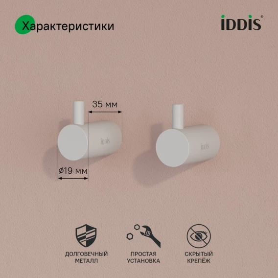 Комплект крючков IDDIS Petite PET2WT2I41 для ванны, белый матовый