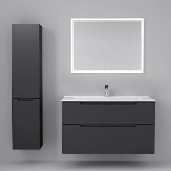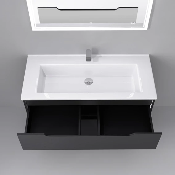 Механизм доводчика, Ящик, LED подсветка, Сенсорный выключатель, Электронные часы, Зеркало, Тумба под раковину, Раковина