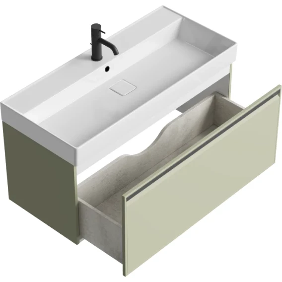 Механизм доводчика, Ящик, LED подсветка, Ручка, Сенсорный выключатель, Зеркало, Тумба под раковину, Раковина