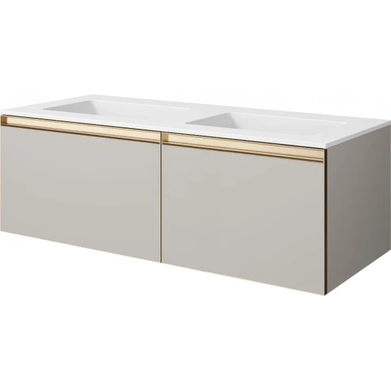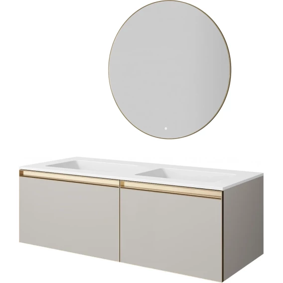 Тумба под раковину Armadi Art Quatro Cashmere 790-M2-140(70+70)-CM-MG+L 140 см, подвесная, с подсветкой, кашемир матовый