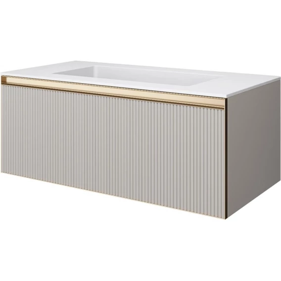 Тумба под раковину Armadi Art Quatro Cashmere Fuga 790-M1-100-CM-RIB-MG-LED 100 см, подвесная, с подсветкой, кашемир матовый