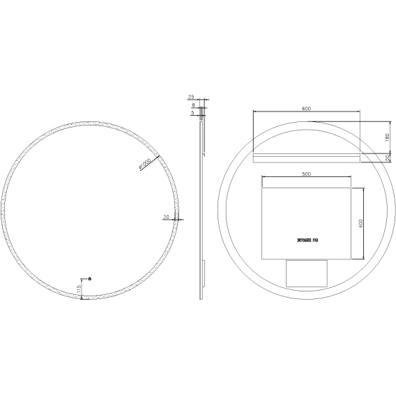 Крепление, LED подсветка, Сенсорный выключатель, Функция анти-пар