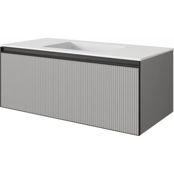 Тумба под раковину Armadi Art Quatro Luna Fuga 790-M1-120-RIB-L-A-LED 120 см, подвесная, с подсветкой, серый матовый