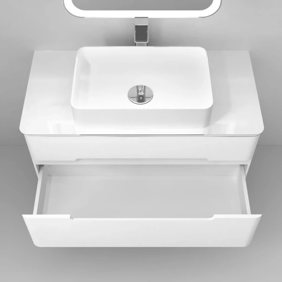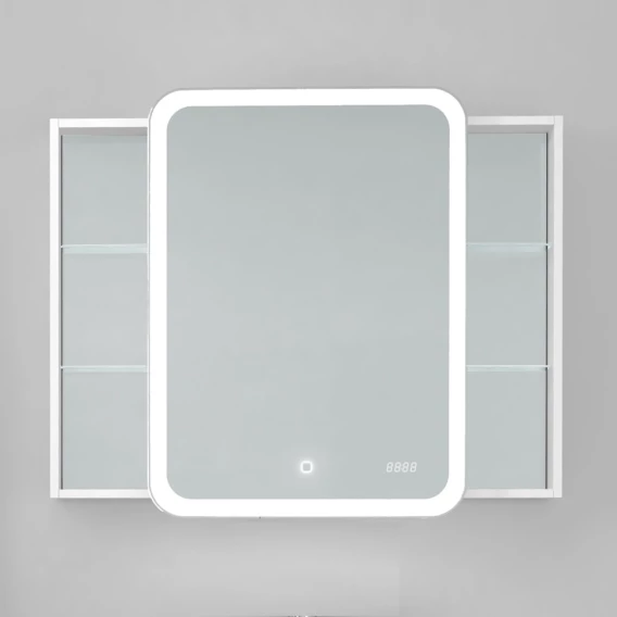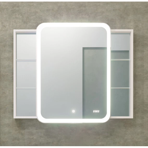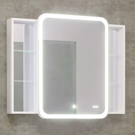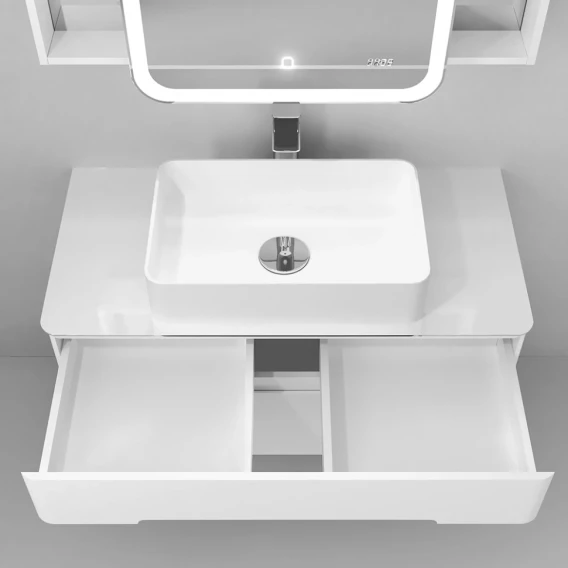 Механизм доводчика, Ящик, Полочка, LED подсветка, Зеркало-шкаф, Сенсорный выключатель, Электронные часы, Столешница, Тумба под раковину, Раковина