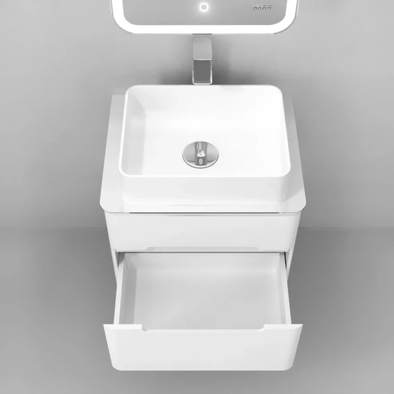 Механизм доводчика, Ящик, Полочка, LED подсветка, Зеркало-шкаф, Сенсорный выключатель, Электронные часы, Столешница, Тумба под раковину, Раковина