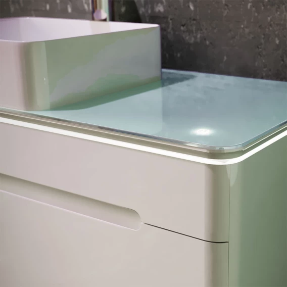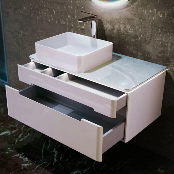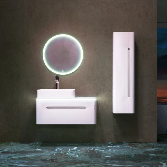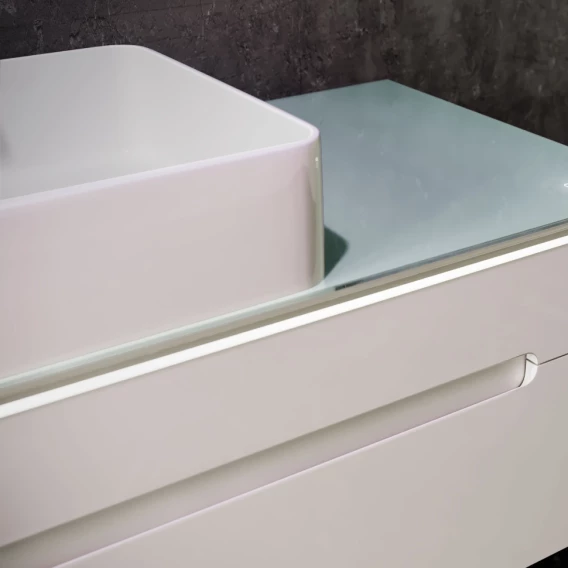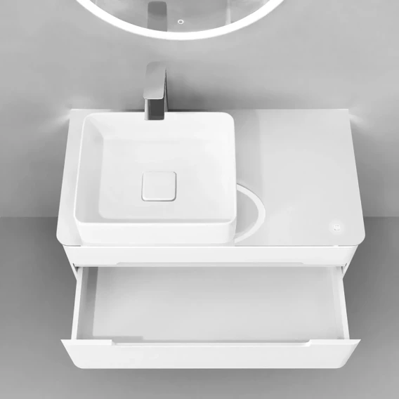 Механизм доводчика, Ящик, LED подсветка, Сенсорный выключатель, Зеркало, Столешница, Тумба под раковину, Раковина