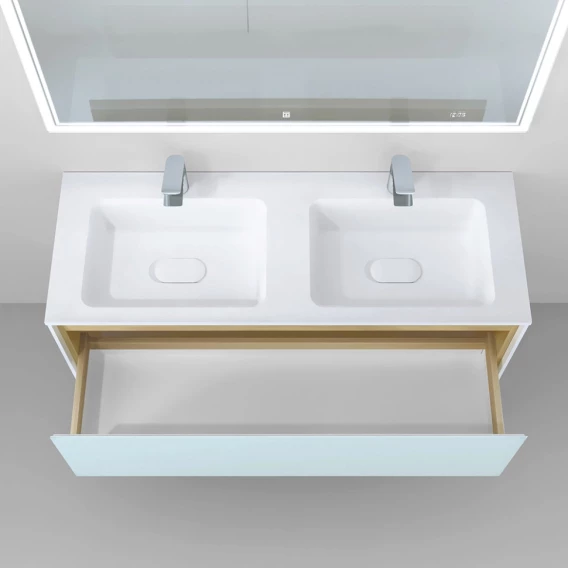 Механизм доводчика, Ящик, Полочка, LED подсветка, Сенсорный выключатель, Электронные часы, Зеркало, Тумба под раковину, Раковина