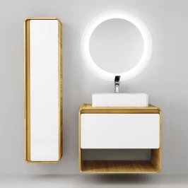 Механизм доводчика, Ящик, Полочка, LED подсветка, Сенсорный выключатель, Зеркало, Столешница, Тумба под раковину, Раковина