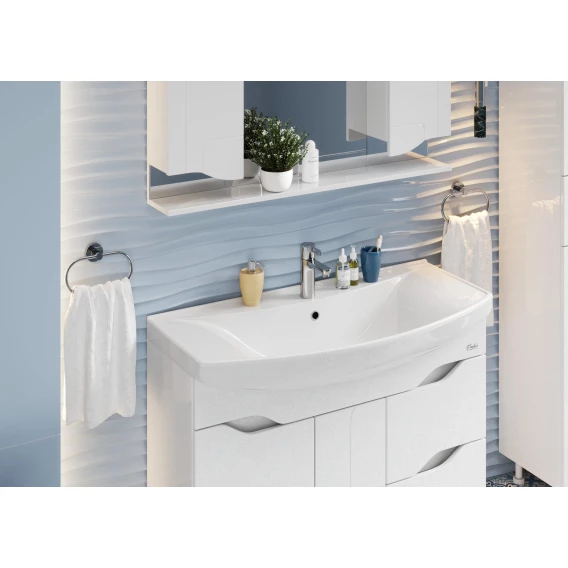 Каждая деталь напольной тумбы Onika Веронэлла 105 отражает индивидуальность владельца, создавая безупречный стиль в ванной комнате.Четыре вместительных выдвижных ящика, снабженные направляющими полного выдвижения, помогут организовать пространство в ванной комнате и компактно разместить необходимые вещи, а распашная дверь посередине, украшенная фрезеровкой и оснащенная системой открывания push-to-open, скрывает дополнительное место для хранения.Ручки, изящно интегрированные в ящики, позволяют сделать эксплуатацию мебели более удобной и практичной.Тумба выполнена из надежной ЛЛМДФ в пленке, устойчивой к механическим воздействиям, перепадам температур и высокой влажности.2 декоративные хромированные и 3 пластиковые ножки с регулировкой по высоте идут в комплекте с тумбой.