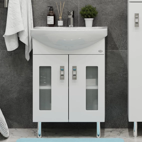 Комплект мебели белый глянец 55 см Onika Кристалл 105555 + 1WH501702 + 205818
