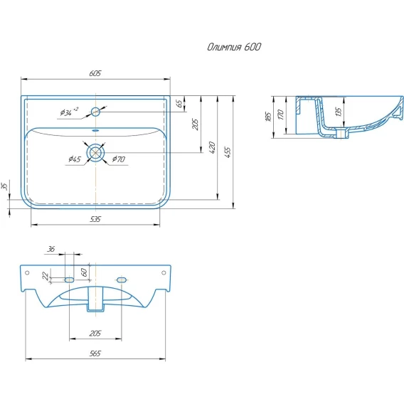 Раковина 60,5x45,5 см Onika Олимпия 4640021061152