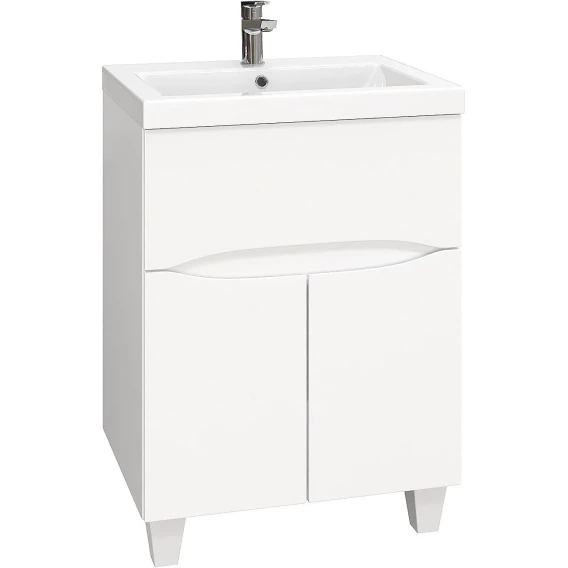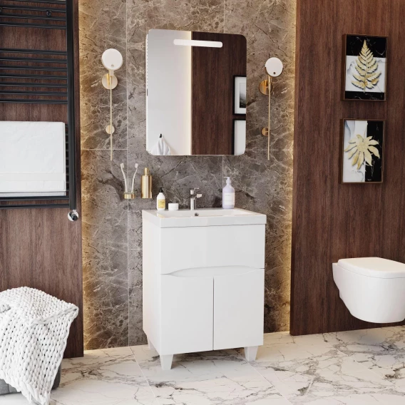 Яркая эстетика строгих линий и блестящий белый глянец - тумба Onika Стрим 60 создана, чтобы наполнить пространство воздухом и сделать особенный свободный интерьер комнаты.Оснащение тумбы позволяет компактно разместить бытовые принадлежности: большой выдвижной ящик идеально подойдет для хранения небольших вещей, а две распашные дверцы скрывают место для более крупных предметов. Ручки, изящно интегрированные в фасады, позволяют сделать эксплуатацию мебели более удобной и практичной.Ящик тумбы сконструирован с разделением внутреннего и подсифонного пространства и оснащен направляющими с доводчиками, а дверцы снабжены системой плавного закрывания.Корпус и фасад тумбы выполнен из ЛЛМДФ в пленке, устойчивых к механическим воздействиям, перепадам температур и высокой влажности.2 декоративных и 2 пластиковых ножки с регулировкой по высоте идут в комплекте с тумбой.