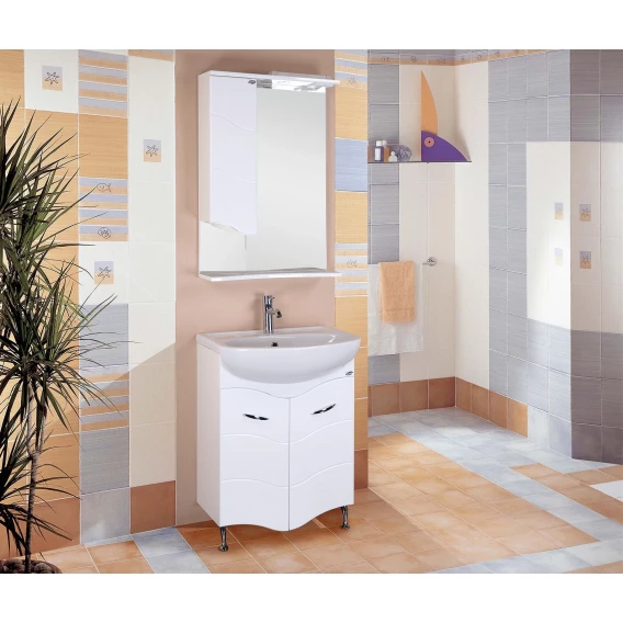 Элегантная напольная белая глянцевая тумба Onika Лайн 60 - выгодное решение для оптимизации ванной комнаты.Тумба максимально удобна в использовании, не занимает много места, позволяет компактно разместить бытовые принадлежности.2 распашных фигурных двери, оснащенные системой плавного закрывания, за которыми расположена полка, украшены изящной фрезеровкой.Корпус тумбы выполнен из ЛДСП, фасад - из ЛМДФ в пленке, устойчивых к механическим воздействиям, перепадам температур и высокой влажности.Две хромированных ручки и четыре ножки (2 декоративных хромированных и 2 пластиковых) идут в комплекте с тумбой.