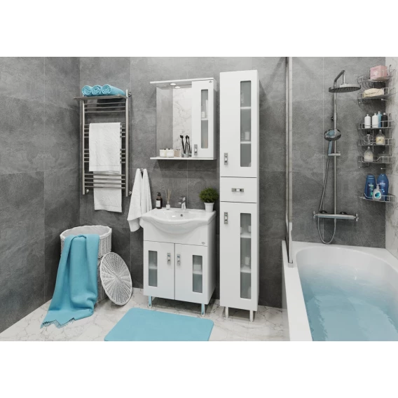 Стильная и красивая напольная тумба Onika Кристалл 65 сможет гармонично вписаться в любой интерьер.Белоснежный глянцевый цвет фасада в сочетании со вставками из матового стекла и хромированными ручками необычной формы придадут ванной комнате ощущение свежести, чистоты и уюта.За распашными дверцами, снабженными системой плавного закрывания и украшенными хромированными ручками, скрывается просторное внутреннее пространство, разделенное горизонтальной полкой: оно служит для размещения необходимых бытовых принадлежностей.Корпус тумбы выполнен из ЛДСП, фасад - из ЛМДФ в пленке, устойчивых к механическим воздействиям, перепадам температур и высокой влажности.Две хромированных ручки и четыре ножки (2 декоративных хромированных и 2 пластиковых) идут в комплекте с тумбой.