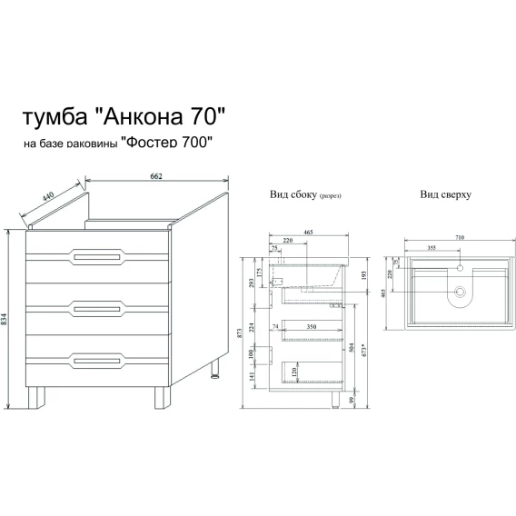Механизм доводчика, Ящик, Полочка, Ручки, Зеркало-шкаф, Ножки, Тумба под раковину, Раковина