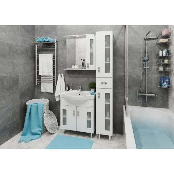 Стильная и красивая напольная тумба Onika Кристалл 70 сможет гармонично вписаться в любой интерьер.Белоснежный глянцевый цвет фасада в сочетании со вставками из матового стекла и хромированными ручками необычной формы придадут ванной комнате ощущение свежести, чистоты и уюта.За распашными дверцами, снабженными системой плавного закрывания и украшенными хромированными ручками, скрывается просторное внутреннее пространство, разделенное горизонтальной полкой: оно служит для размещения необходимых бытовых принадлежностей.Корпус тумбы выполнен из ЛДСП, фасад - из ЛМДФ в пленке, устойчивых к механическим воздействиям, перепадам температур и высокой влажности.Две хромированных ручки и четыре ножки (2 декоративных хромированных и 2 пластиковых) идут в комплекте с тумбой.