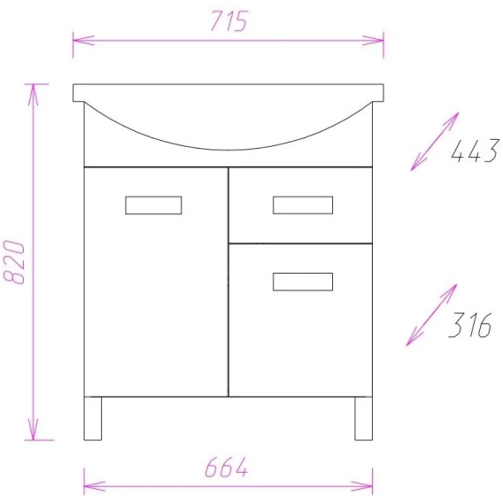 Напольная тумба для ванной комнаты Onika Балтика 70 это простые функциональные формы и яркий акцент в любом дизайне.Глянцевый белый цвет фасада, ненавязчивая горизонтальная фрезеровка, врезные хромированные ручки и аккуратная лаконичность - все это позволяет коллекции Балтика стать центральным звеном интерьера ванной комнаты.В фасаде тумбы присутствует легкая асимметрия: слева расположена большая распашная дверца, за которой скрывается полка, а справа - выдвижной ящик, под ним - небольшая распашная дверца. Ящик тумбы оснащен направляющими полного выдвижения, а дверцы снабжены системой плавного закрывания.Корпус тумбы выполнен из ЛДСП, фасад - из ЛМДФ в пленке, устойчивых к механическим воздействиям, перепадам температур и высокой влажности.2 декоративных и 2 пластиковых ножки с регулировкой по высоте идут в комплекте с тумбой.