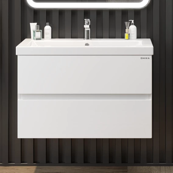 Комплект мебели белый глянец 80 см Onika Эвада 108058 + UM-COM80/1 + 208096