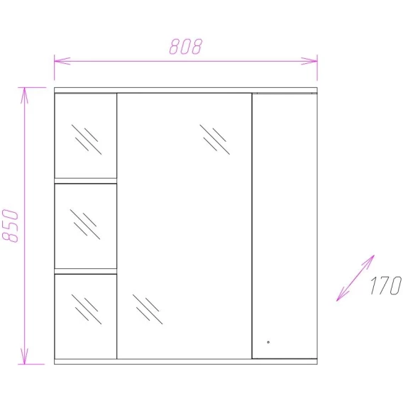 Механизм доводчика, Ящик, Полочка, Ручки, Подсветка, Зеркало-шкаф, Выключатель, Розетка, Ножки, Тумба под раковину, Раковина