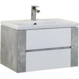 Подвесная тумба Стоун 70 отражает актуальные тенденции в дизайне мебели для ванной комнаты: минимализм и геометрия фасадов, чёткость и лаконичность форм, отсутствие декора и стильный цвет темного бетонного покрытия.Два ящика с направляющими скрытого монтажа с доводчиками разделены на отсеки для удобной организации косметических средств и других аксессуаров.Корпус тумбы выполнен из ЛДСП, фасад - из ЛМДФ в пленке, устойчивых к механическим воздействиям, перепадам температур и высокой влажности, при этом она надежно крепится к стене и не занимает место на полу, не создавая при этом сложностей в уборке помещения.Подвесы для крепления тумбы - в комплекте.