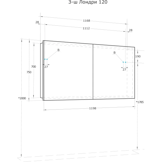Зеркальный шкаф 119,8x75 см белый глянец Акватон Лондри 1A267402LH010