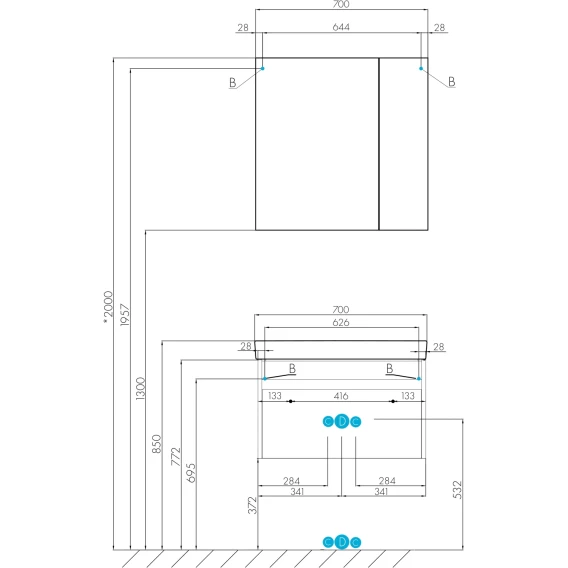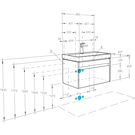 Механизм доводчика, Ящик, Полочка, Зеркало-шкаф, Тумба под раковину, Раковина