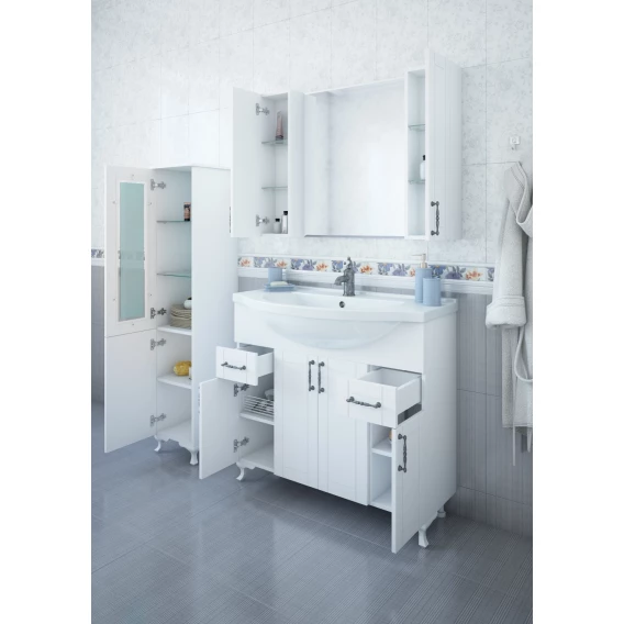 Механизм доводчика, Ящик, Полочка, Ручки, Зеркало-шкаф, Ножки, Тумба под раковину, Раковина
