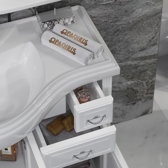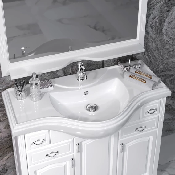 Механизм доводчика, Ящик, Полочка, Ручки, Выключатель, Светильник, Зеркало, Тумба под раковину, Раковина