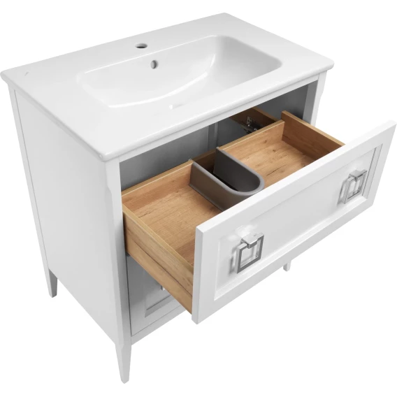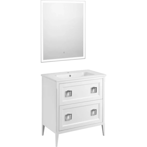 Механизм доводчика, Ящик, Ручки, LED подсветка, Сенсорный выключатель, Ножки, Зеркало, Тумба под раковину, Раковина