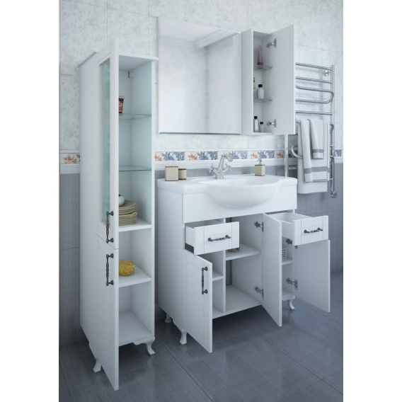 Механизм доводчика, Ящик, Полочка, Ручки, Зеркало-шкаф, Ножки, Тумба под раковину, Раковина