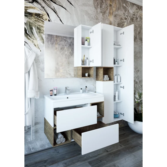 Комплект мебели белый матовый/дуб рустикальный 81 см Sanflor Даллас C04836 + 4640021065198 + C04835