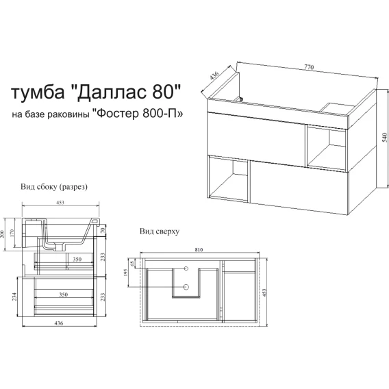 Ящик, Полочка, Зеркало-шкаф, Система "Push-to-open", Тумба под раковину, Раковина