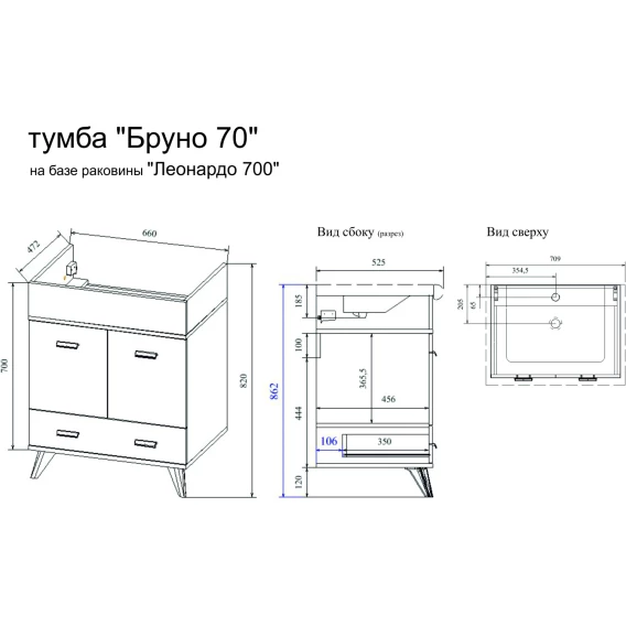 Механизм доводчика, Ящик, Полочка, Ручки, Подсветка, Выключатель, Розетка, Ножки, Зеркало, Тумба под раковину, Раковина