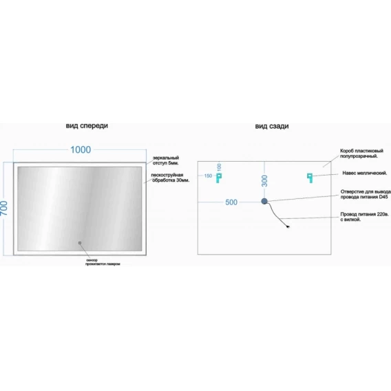 Крепление, Механизм доводчика, Ящик, LED подсветка, Сенсорный выключатель, Зеркало, Тумба под раковину, Раковина, Вилка