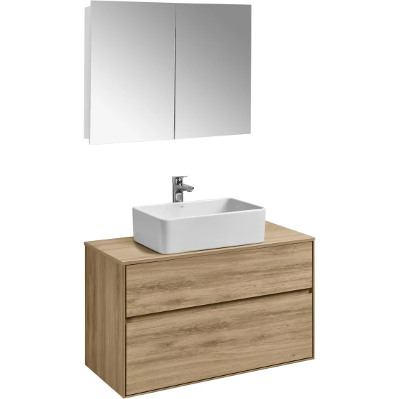 Механизм доводчика, Ящик, Полочка, Зеркало-шкаф, Система "Push-to-open", Столешница, Тумба под раковину, Раковина