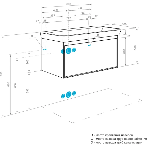 Механизм доводчика, Ящик, Полочка, Зеркало-шкаф, Система "Push-to-open", Тумба под раковину, Раковина
