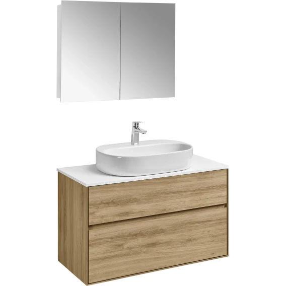 Механизм доводчика, Ящик, Полочка, Зеркало-шкаф, Система "Push-to-open", Столешница, Тумба под раковину, Раковина